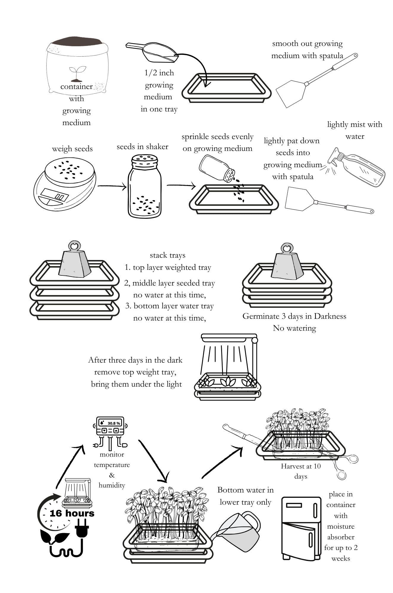 germinate the seeds in darkness, manage the growth cycles, harvest at peak nutrition, and store your microgreens efficiently.Clean nutrition grown at home in less than ten minutes a day.