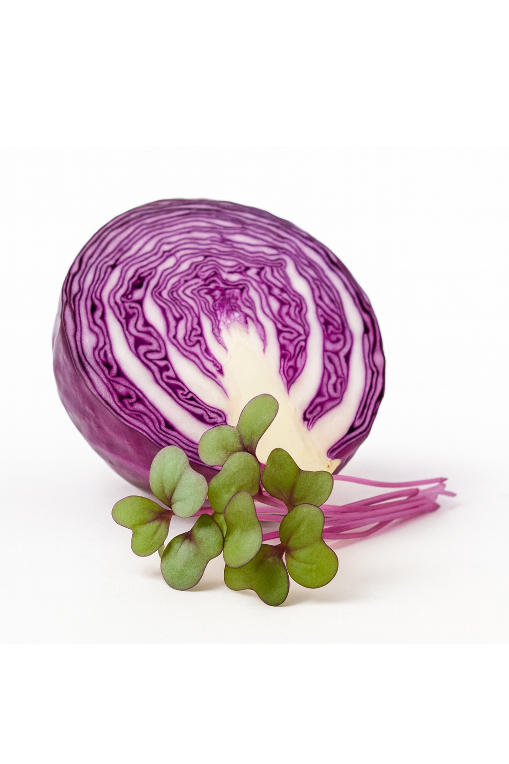 Highly concentrated Vitamin C in red cabbage microgreens helps to boost the immune system and protect you from common illnesses like cold and flu. People with high Vitamin C levels are also less at risk of developing eye disease and cardiovascular disease.